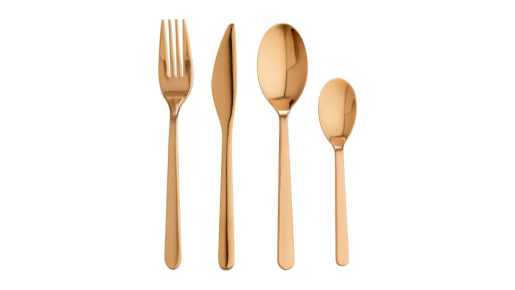 W komplecie: widelec, nóż, łyżka, łyżeczka.
